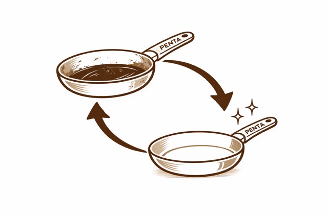 多少ボロボロになっても、料理は快適。素材も安心。交換もできる。だから、ペンタは“高いけど損しないフライパン”なんだと思います